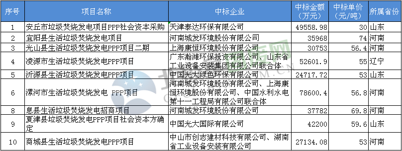 9月份,中國政府采購網發布10個垃圾焚燒發電項目中標公告,總金額超37億人民幣,目標項目主要集中在山東、河南、遼寧三個省份,其中河南省占5個,總投資額超21億,占9月中標項目總額的57%。