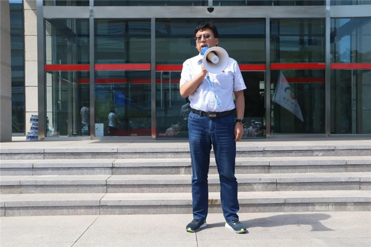 6月5日下午,全體員工(除值班人員)在辦公樓門前集合,整裝待發。公司常務副總經理田鋒做動員講話。