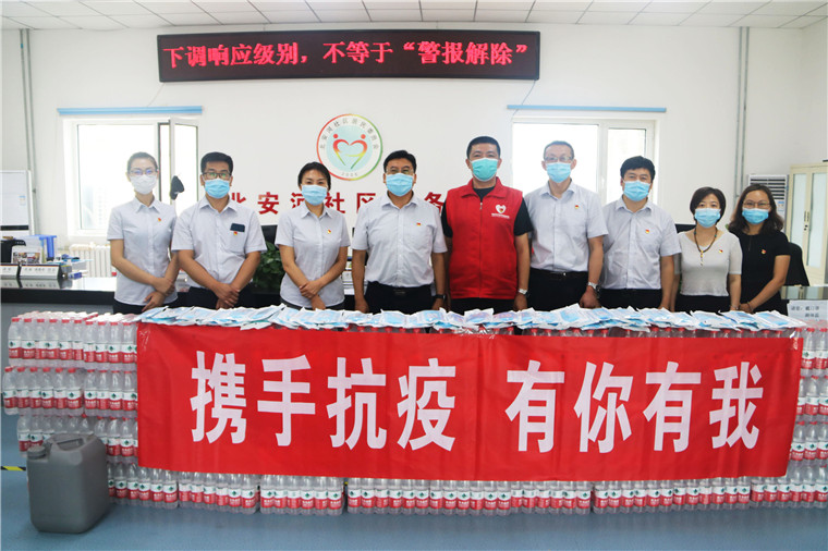 在“七一”黨的生日來臨之際,北控綠海能黨支部前往海淀區蘇家坨鎮北安河社區,慰問自今年春節以來一直奮戰在抗疫一線的社區工作者,并向他們捐贈口罩、礦泉水等物資。