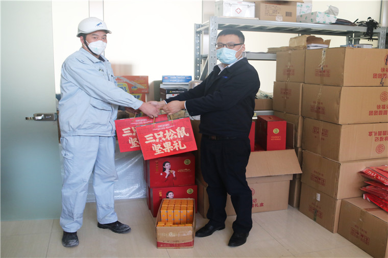 臘月廿六,公司為全體員工發放了米、面、糧、油、熟食等生活必須品外,還把上級工會送來的時令果蔬、干果、糖果等新春年貨發給大家,讓每一位異地工作的員工感受到家的溫暖與愛的呵護。