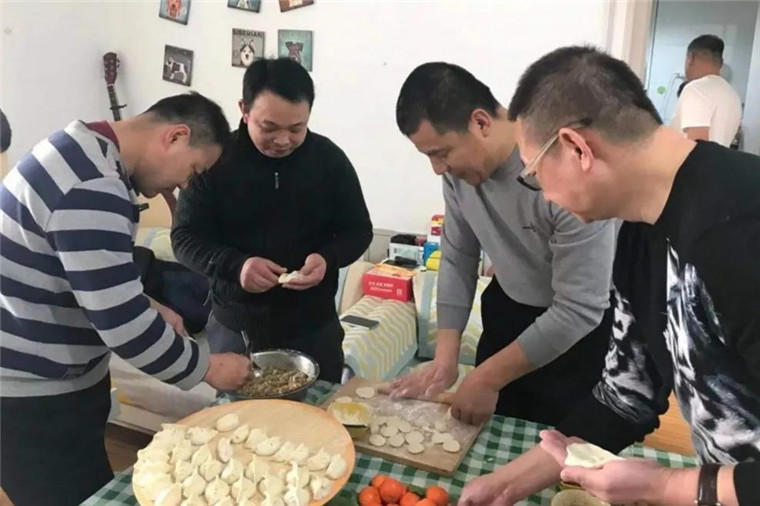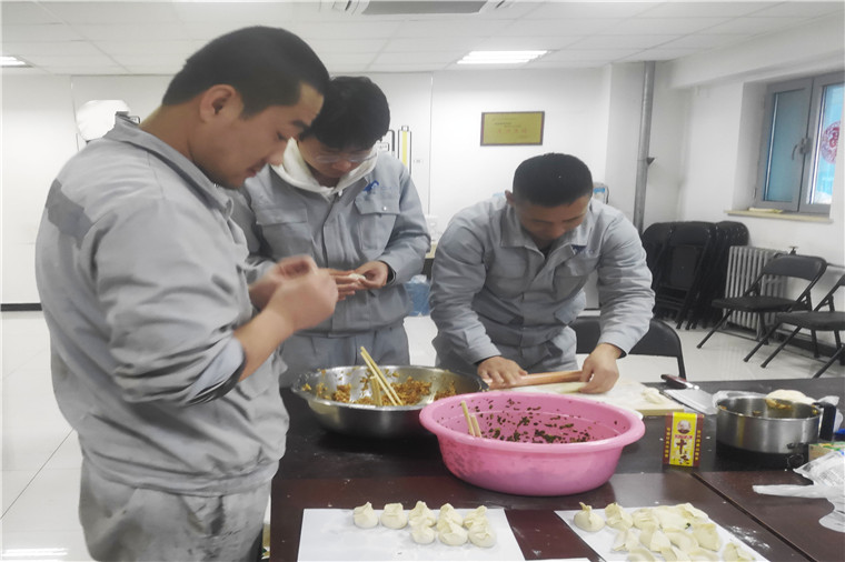 而在微信的另一端,公司領導班子正在食堂包餃子慰問節日期間堅守在工作崗位的員工。除夕之夜,為了讓值上的員工吃上熱騰騰的年夜飯,公司特意將精心準備的餃子、可口的飯菜、水果、飲料送到工作崗位上,讓“家”里的每一位成員都能共享年夜飯。