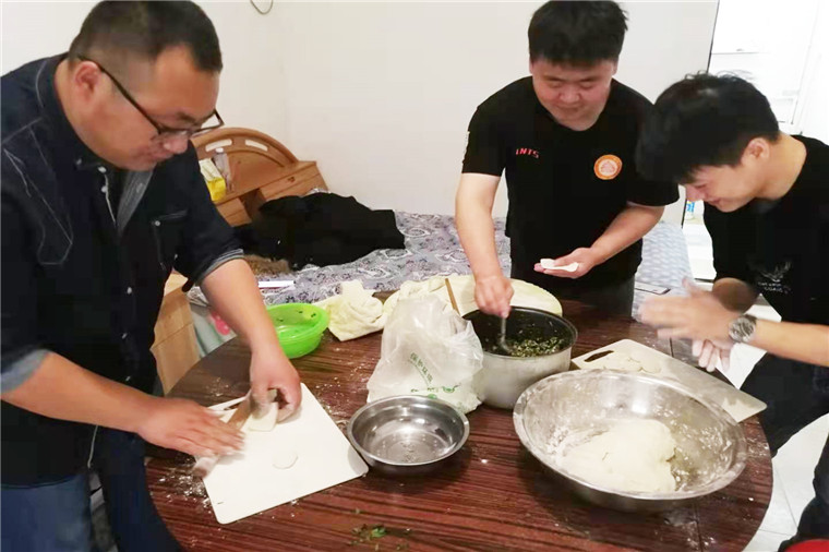 除夕這一天,大家以班組為單位,五、六個人湊在一起組成了一個個臨時的小“家”。臨近中午,大家就開始忙碌起來,擇菜、拌餡、搟餃子皮、私廚小炒......一個個大顯身手,在公司微信群里展開了廚藝大比拼:團圓餅、金元寶、長壽面、紅燜大蝦、清蒸鱸魚......一道道美味佳肴在微信群里接連曬出,色香味佳。想不到這些在生產一線沖鋒陷陣的“鐵血硬漢”竟然“十八般武藝,樣樣精通”,廚藝也如此高超!大家不禁在微信群里紛紛豎起大拇指點贊。