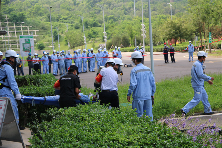 演練內容從缺陷產生、匯報,辦理有限空間許可手續,有限空間安全措施執行直至人員受傷救援進行了全過程演練,宣貫了有限空間準入流程和應急救援響應程序。演練期間各應急救援隊伍明確救援職責,分工明確,各盡其責,爭分奪秒,為搶險救援提供有力保障。演練結束后,副總指揮楊臻、總指揮田鋒分別就演練過程中出現的問題及事故處置的方式方法進行了點評,對完善有限空間中毒窒息事故應急救援演練提出了意見和建議。