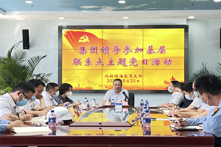 8月25日上午,北京控股副總裁、北控環境黨委副書記、總裁陳新國到北控綠海能開展聯系基層黨支部主題黨日活動。北京控股政策研究所干部周晶、北控環境集團黨群工作部負責人趙遠飛陪同。北控綠海能黨支部書記、常務副總經理田鋒及公司黨支部委員、全體黨員參加活動。