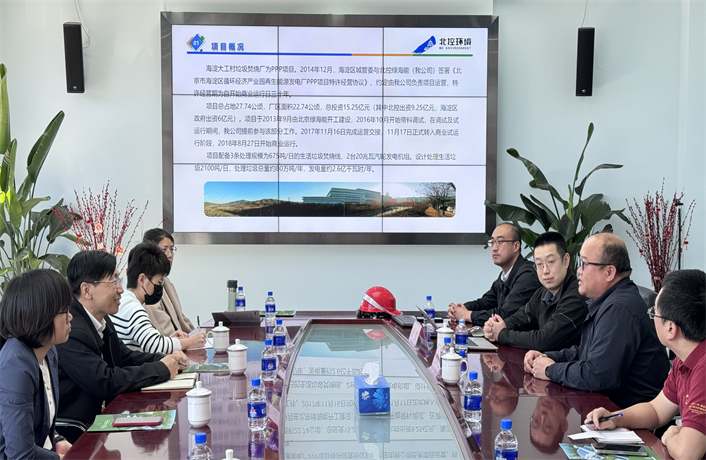 隨后,人大商學院校方領導、學員與北控環境集團及北控綠海能公司相關負責人召開座談會,北控環境集團規劃與投資部武楚作《能源決定國際競爭力》報告,并就海淀再生能源發電廠的運營規模及工藝流程進行深入交流。