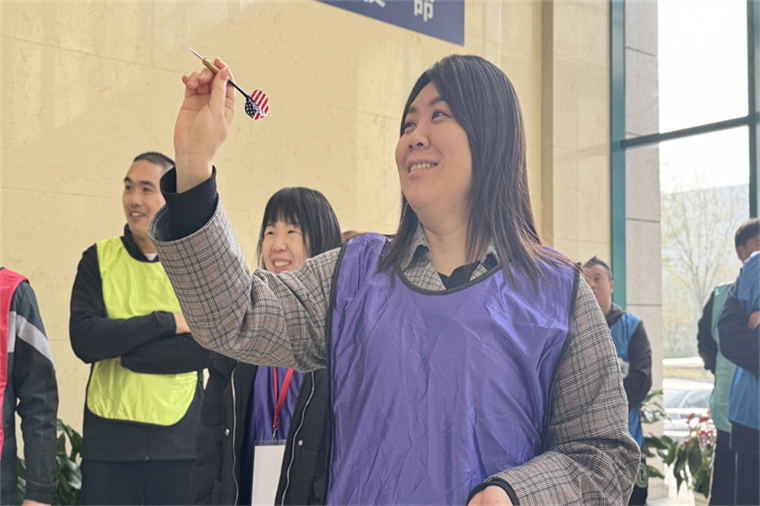 與此同時,羽毛球比賽、飛鏢比賽、定點投籃及5人接力賽等趣味項目正輪番進行。為增加運動會的趣味性和挑戰性,十支參賽小隊由雙方單位職工隨機組成,比賽項目由團體賽和小組賽交叉進行。在簡單的破冰游戲之后,隨著比賽的深入,大家從陌生逐漸熟悉,成為了攜手共進的戰友。網前輕撥,后場重扣;屏息凝神,一鏢中的;站定瞄籃,精準投射;快速接棒,全力沖刺......大家在比賽中較量實力,在運動中升溫友誼。