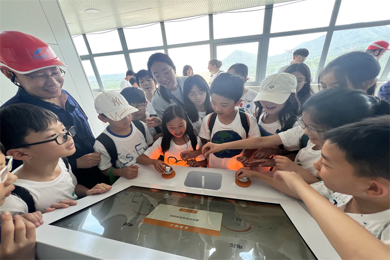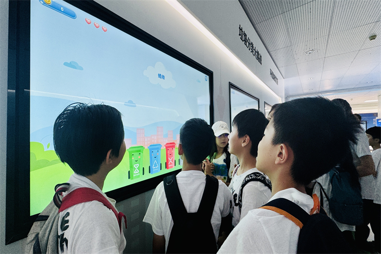 隨后,孩子們跟隨著講解員開啟了環保探秘之旅。從生活垃圾發酵焚燒到蒸汽的磅礴奔涌,再到推動發電機產生強大電流……講解員用通俗易懂的語言和生動形象的三維動畫演示,揭秘了生活垃圾“浴火重生”后的“一度電的誕生”。孩子們通過實地參觀親歷生活垃圾“變廢為寶”的神奇蛻變,深刻領悟科技創新對環境保護的重要作用。