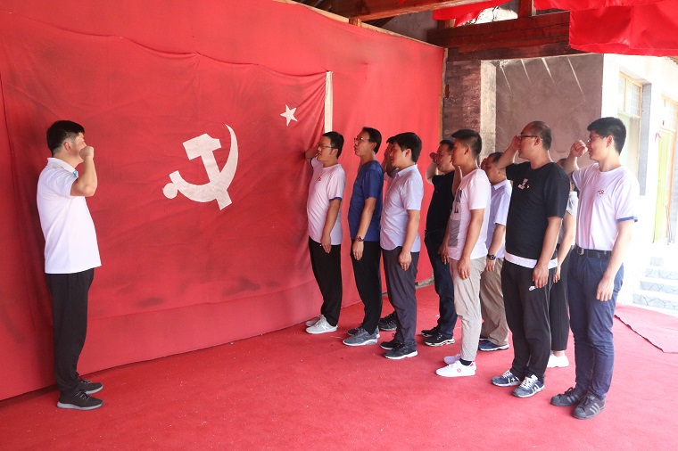 走出陳列館,來到村內大戲臺,在黨旗面前,全體黨員舉起右手,莊嚴重溫了入黨誓詞。通過今天的教育,每一位同志在今后工作和生活中,時刻牢記自己是一名共產黨員,嚴格要求自己,發揮黨員同志的優良傳統和作風,發揮黨員同志的先鋒風模范帶頭作用,為公司和國家的發展貢獻自己的力量。