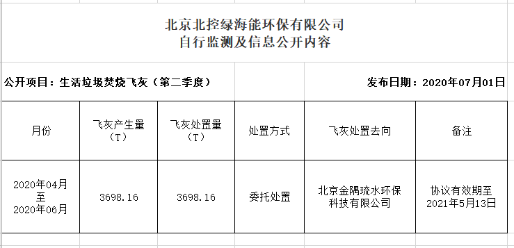 環境監測季度報表公示(生活垃圾焚燒飛(fei)灰(hui))