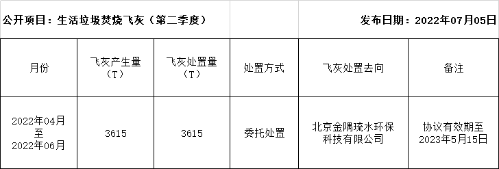環境監測季度報表公示(生活垃圾焚燒飛灰)