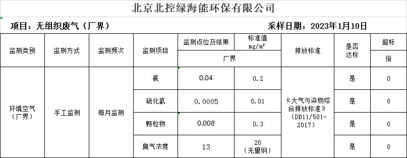 環境監測月度報表公示(無組織廢氣)