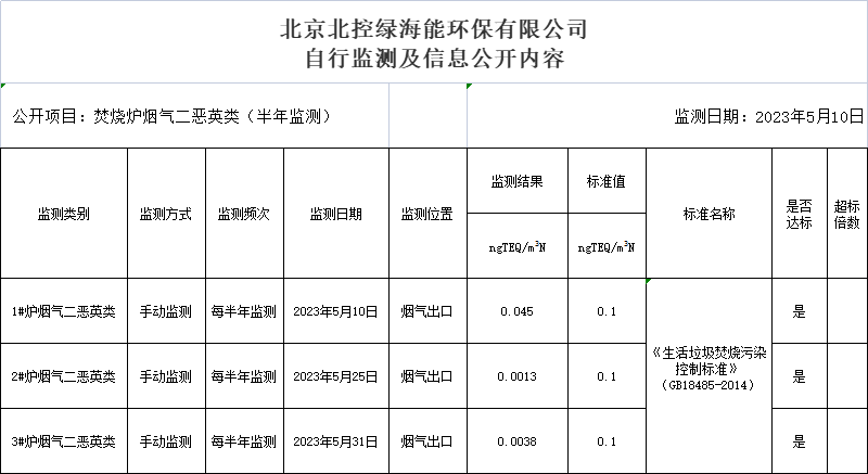 焚燒爐煙氣二噁英監測數據公(gong)示(半年)
