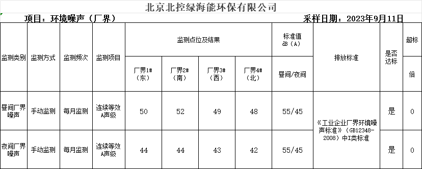 環境監測月度報表公示(廠界噪聲)