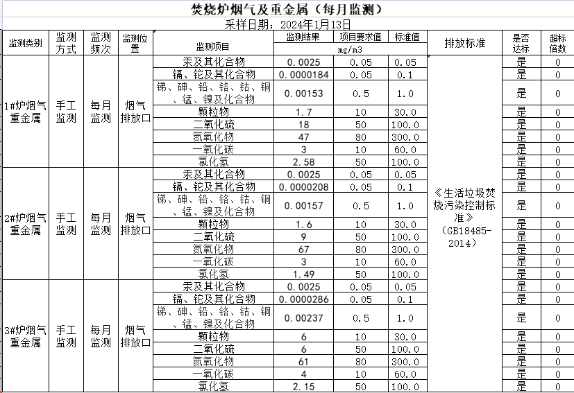 環境監測季度報表公示(生活垃圾焚燒飛灰)
