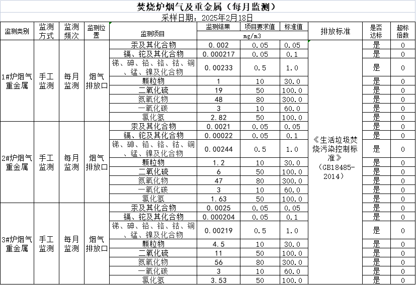 環境監測季度報表公示(生活垃圾焚燒飛灰)