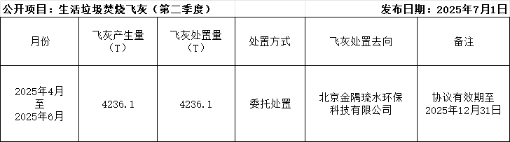 環境監測季度報表公示(生活垃圾焚燒飛灰)
