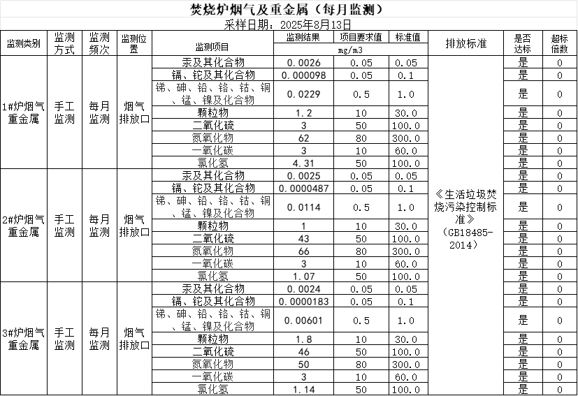 環境監測季度報表公示(生活垃圾焚燒飛灰)