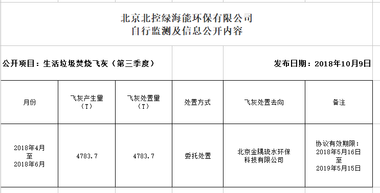 環境監測季度報表公示(生活垃圾焚燒飛灰)